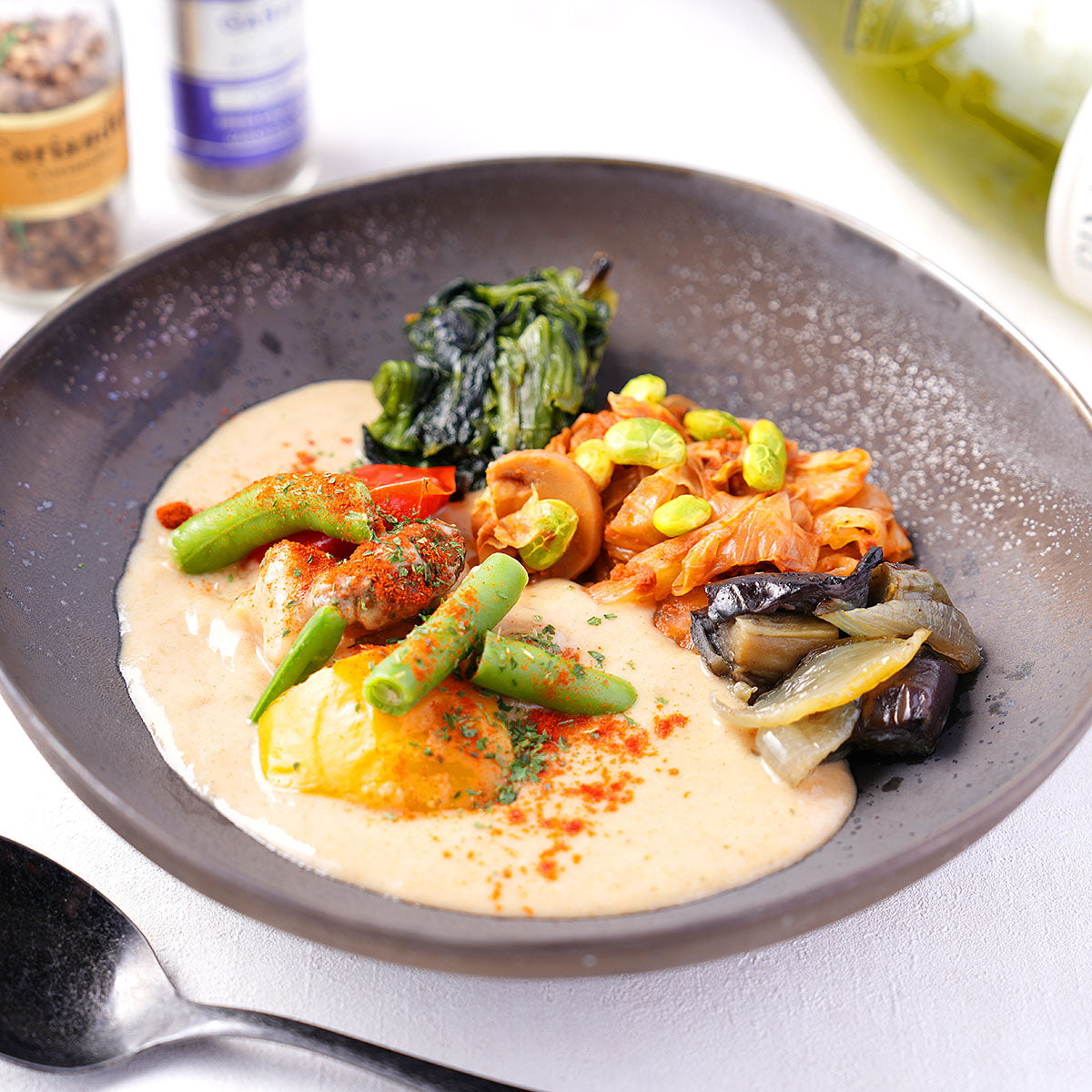 魚介の旨味とスパイスの香りが調和したクリーミーな一皿です。炒めた魚介と白ワインが織りなす芳醇な風味をベースにクミン、コリアンダー、ガラムマサラをアクセントに加えました。牛乳とフュメ・ド・ポワソンで深みのあるコクをプラスし滑らかな仕上がりにしました。海の恵みとスパイスの香りを、ぜひご堪能ください。